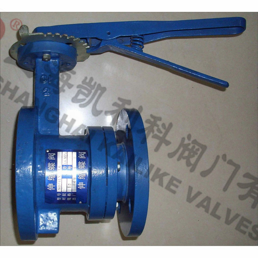 SD41X/SD43H手動伸縮蝶閥具有自動補(bǔ)償管道熱脹冷縮方便裝卸的功能,使用于溫度在425℃以下,公稱壓力在1.6MPa以下的石油、化工、電力、造紙、給排水和市政建設(shè)等工業(yè)管道上作調(diào)節(jié)流量和載斷流體的最佳裝置。