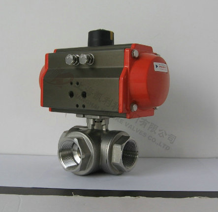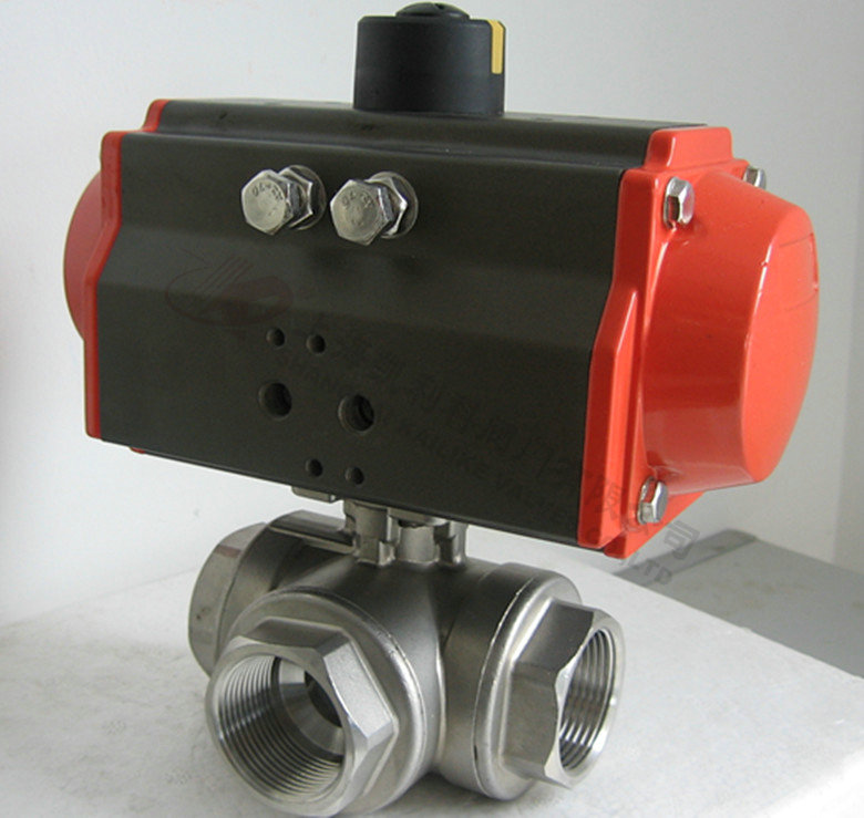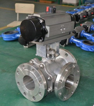 氣動(dòng)三通球閥分L型和T型,介質(zhì)流通方向見下圖。L型氣動(dòng)三通球閥適用于介質(zhì)流向的切換,能使相互垂直的兩個(gè)通道連通:T型氣動(dòng)三通球閥適用于介質(zhì)的分流、合流或流向 切換,T型孔道可以使三個(gè)通道互相連通或使其中兩個(gè)通道連通,氣動(dòng)三通球閥一般采用三個(gè)閥座結(jié)構(gòu),亦可根據(jù)用戶要求采用四閥座結(jié)構(gòu)。