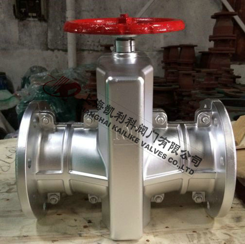 GJ41X不銹鋼管夾閥由上下鑄鐵、鋁合金、不銹鋼閥體,橡膠管套、大小閥桿閘板、上下導(dǎo)柱等零件組成。當(dāng)順轉(zhuǎn)手輪時(shí),使大小閥桿同時(shí)帶動(dòng)上下茬板、壓縮管套、進(jìn)行關(guān)閉,反之即行開(kāi)啟。這樣,閘板在導(dǎo)柱之間上下往復(fù)完成閥門開(kāi)閉工作,另因橡膠管套或承力小,所以在開(kāi)閉時(shí),操作人員旋轉(zhuǎn)輪時(shí)只要感到適量抵觸,均達(dá)到開(kāi)閉極點(diǎn)。切勿盡力多人補(bǔ)助,禁用其他工具開(kāi)閉。