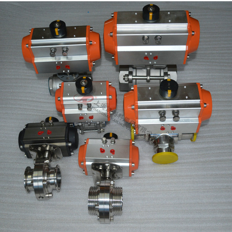 采用新型GT系列或AT系列氣動執(zhí)行器,有雙作用式和單作用式(彈簧復位),齒輪傳動,安全可靠;大口徑閥門采用AW型系列氣動執(zhí)行器拔叉式傳動,結(jié)構(gòu)合理,輸出扭矩大,有雙作用式和單作用式。