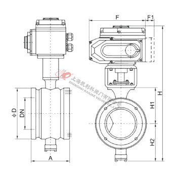 VQ977(H/FY)對(duì)夾式電動(dòng)V型球閥外形參數(shù)及連接尺寸